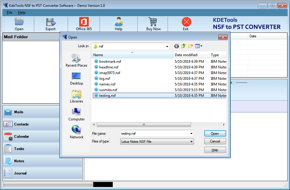 - Go to the ‘Open’ button to browse the Lotus Notes NSF files.