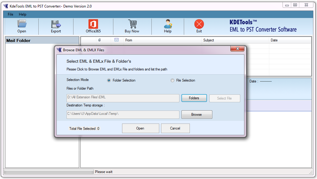 - Dual file selection: The software provides users the dual EML/EMLX file selection like File selection by which you can browse different EML files for conversion and folder selection by which you can select a folder that contains EML/EMLX files.