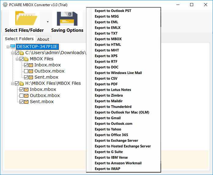 Step 2. Now, go for the Select Files/Folders option and then click on the Select Files option through which you can transfer only required MBOX files. Or you can choose the Select Folder option which allows you to select that folder which contains many MBOX files.