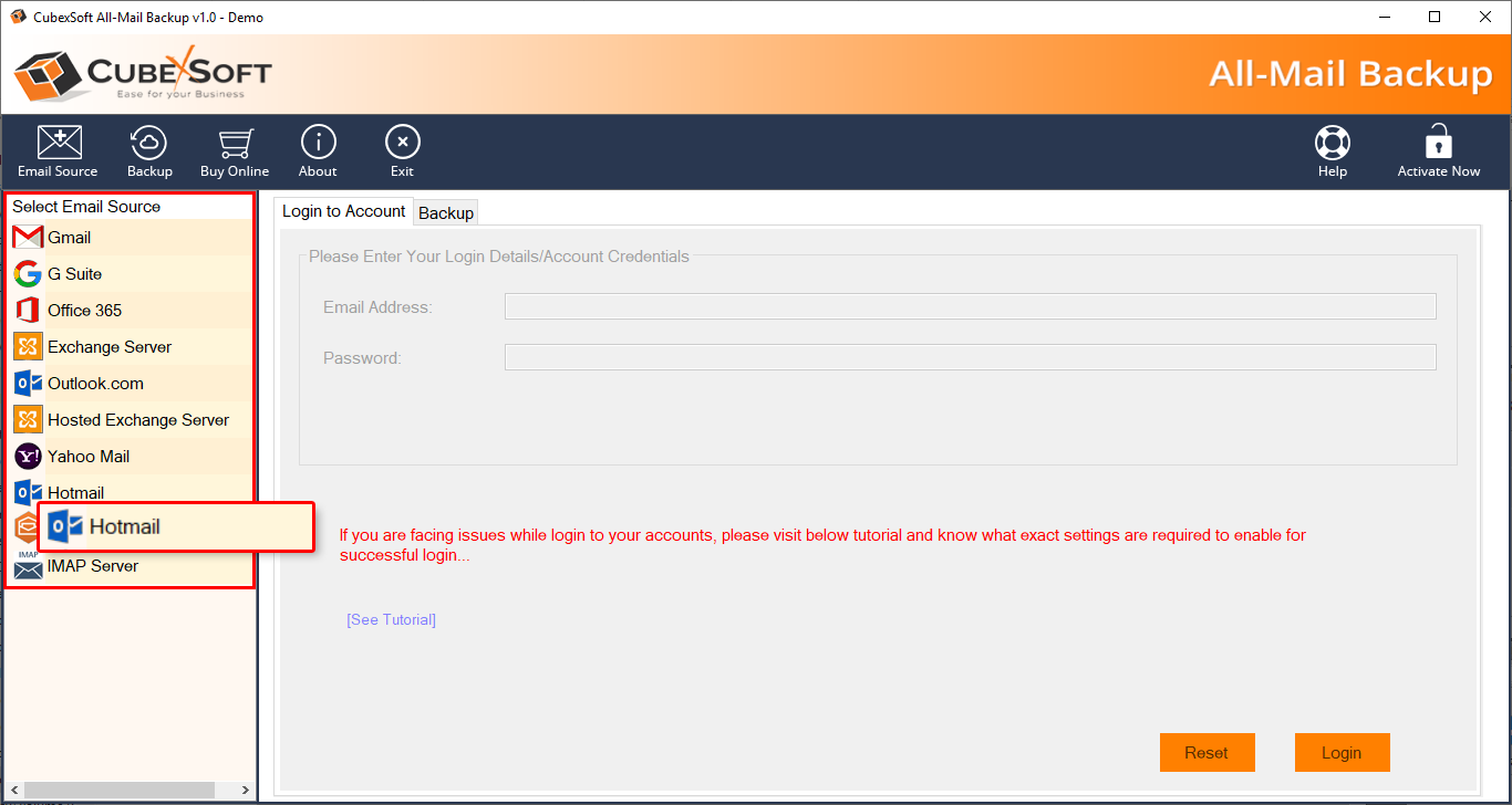 Step 1 – Download and open Hotmail Backup Tool in the Windows system